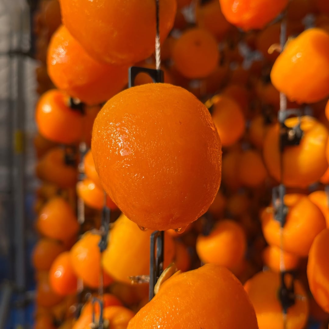 一つ一つ丁寧に皮をむき、吊されて柿暖簾になった柿たちは、太陽の光と自然の風によって少しずつ乾燥してゆきます。
