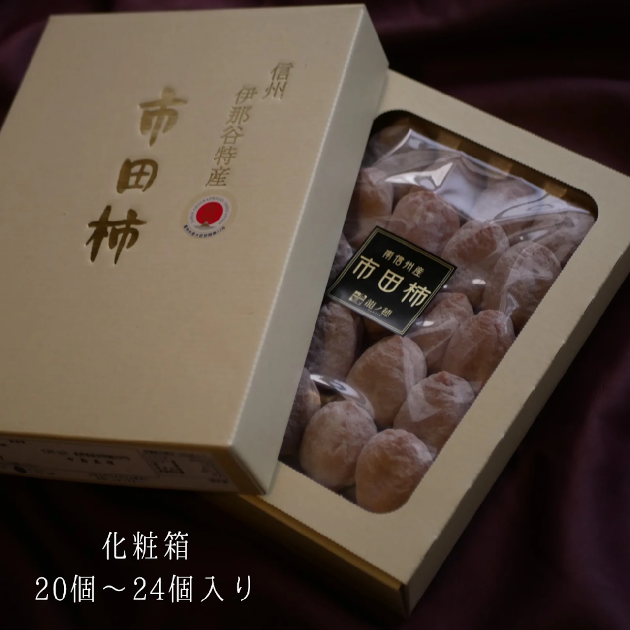 南信州の厳しい寒さと温暖な日差しが生み出す市田柿は、一粒一粒を手作業で仕上げていくため、非常に希少なものです。贅沢な一品ですので贈り物やお土産にも喜ばれることと存じます。